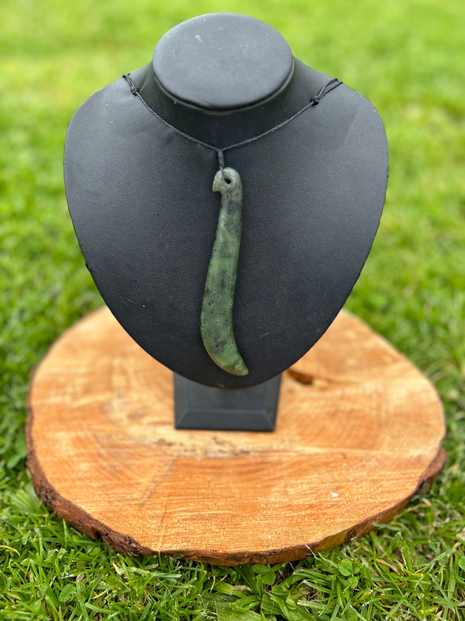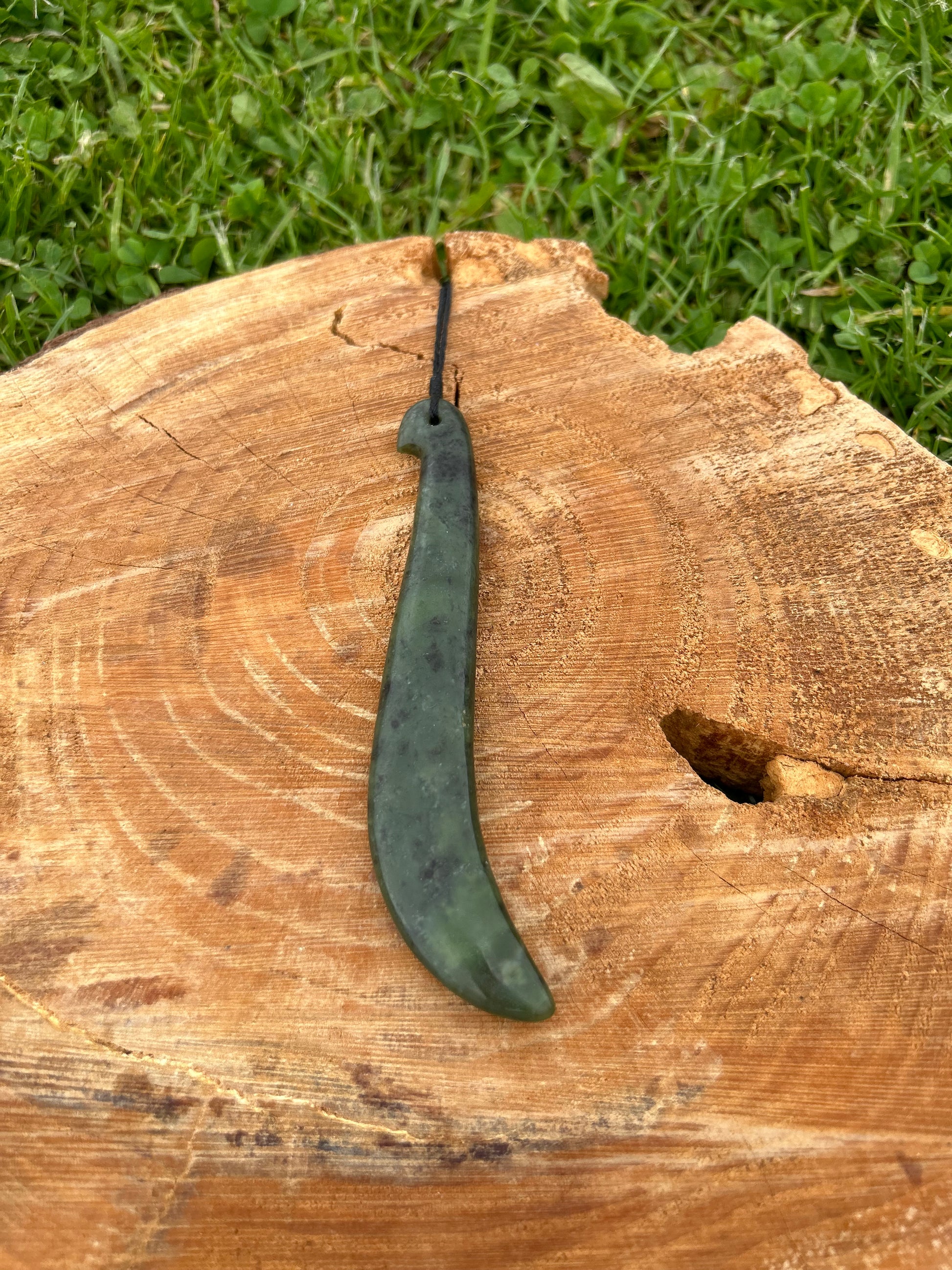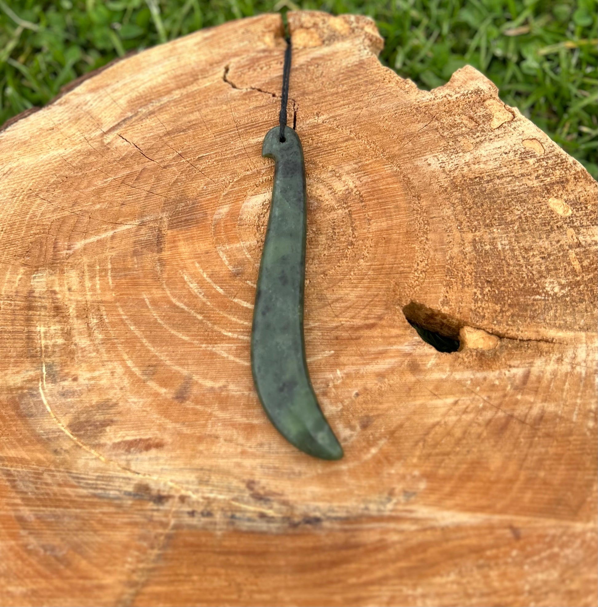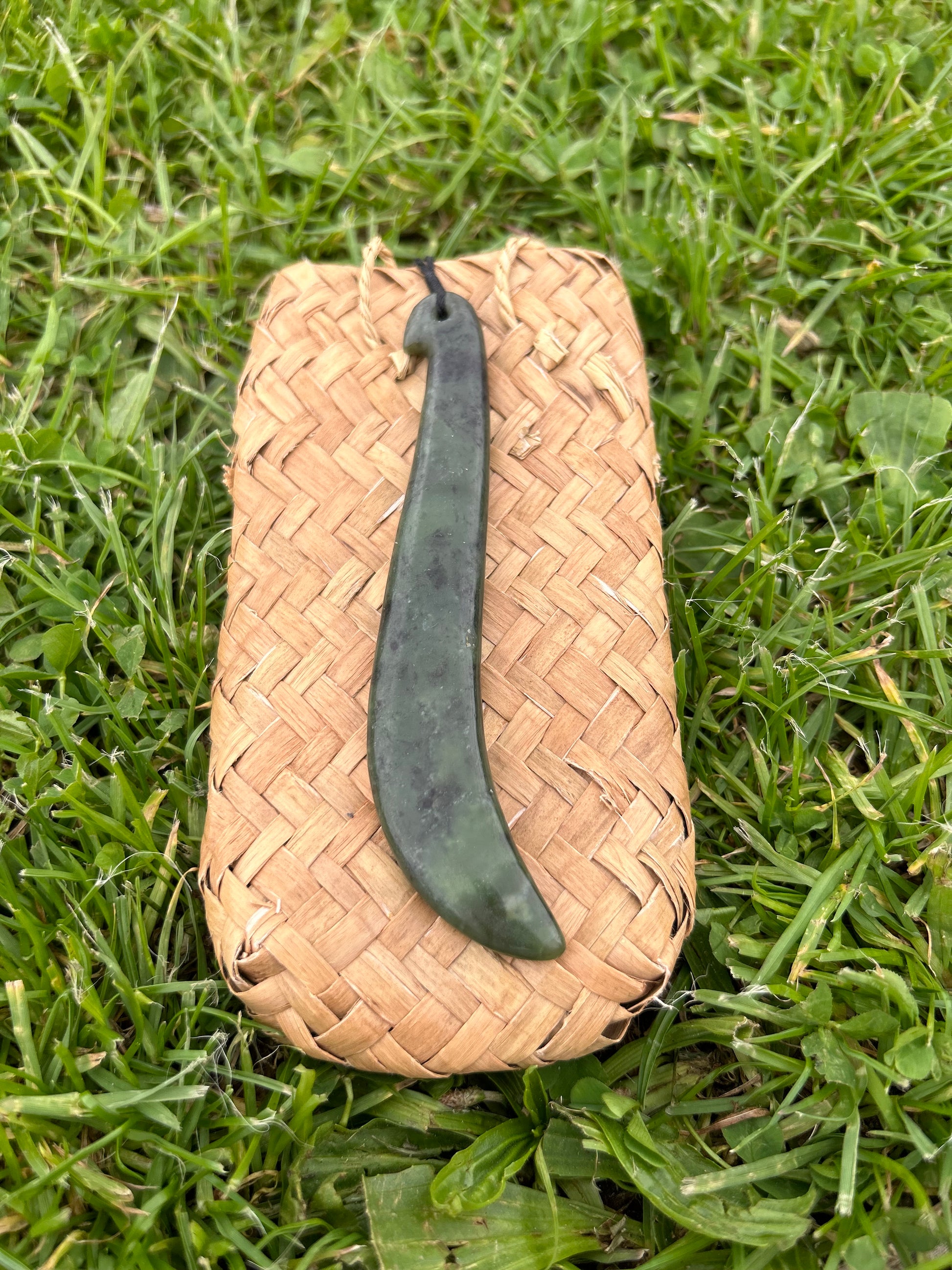 Kapeu are slender adornments with a slight bend at the bottom and were often worn as ear and neck pendants. Kapeu were highly prized and a sign of high rank in Māori society. As with many Māori personal adornments, Kapeu are often passed down generationally.