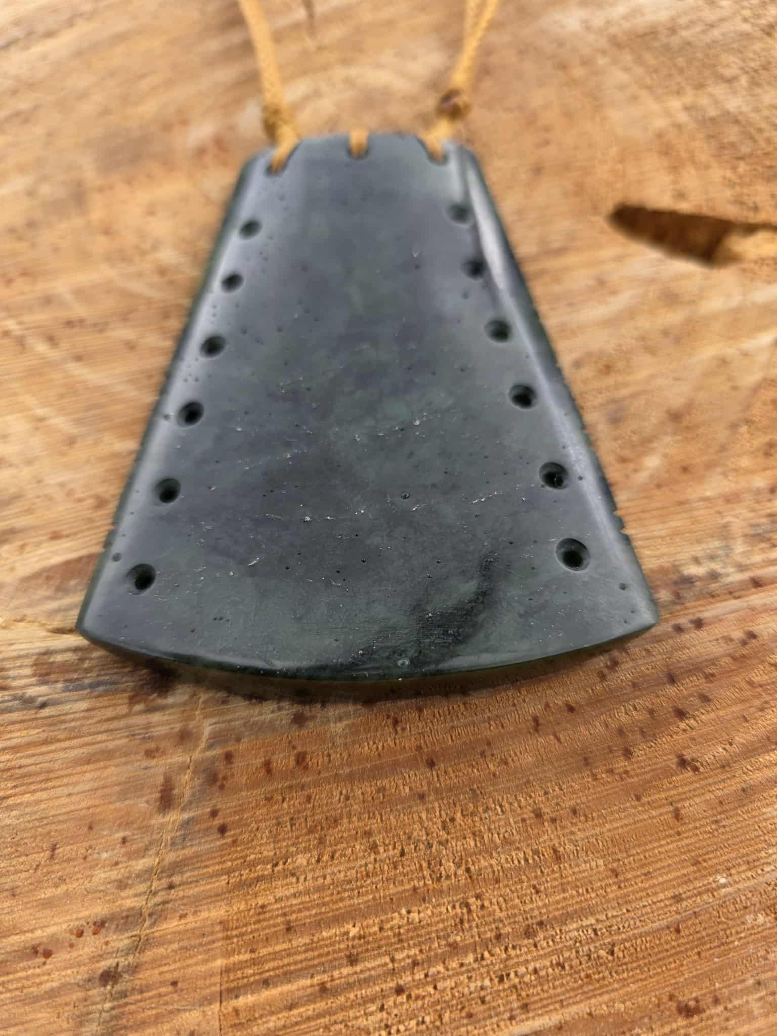 This exquisite pounamu toki is a tangible connection to your heritage, with intricate notches and holes that weave together the threads of whānau, iwi, hapū, and the ancestors who have come before. Each groove tells a story of love, strength, and community, making this piece a unique and meaningful symbol of your roots and identity. Handcrafted with care and reverence, this toki is a beautiful representation of New Zealand's rich cultural traditions.